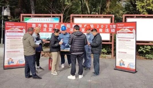 12月15日,南方电网广西桂林阳朔供电局在阳朔公园开展“电力普法宣传进景区”活动,推动法治宣传与旅游场景深度融合,让法律知识贴近群众生活。